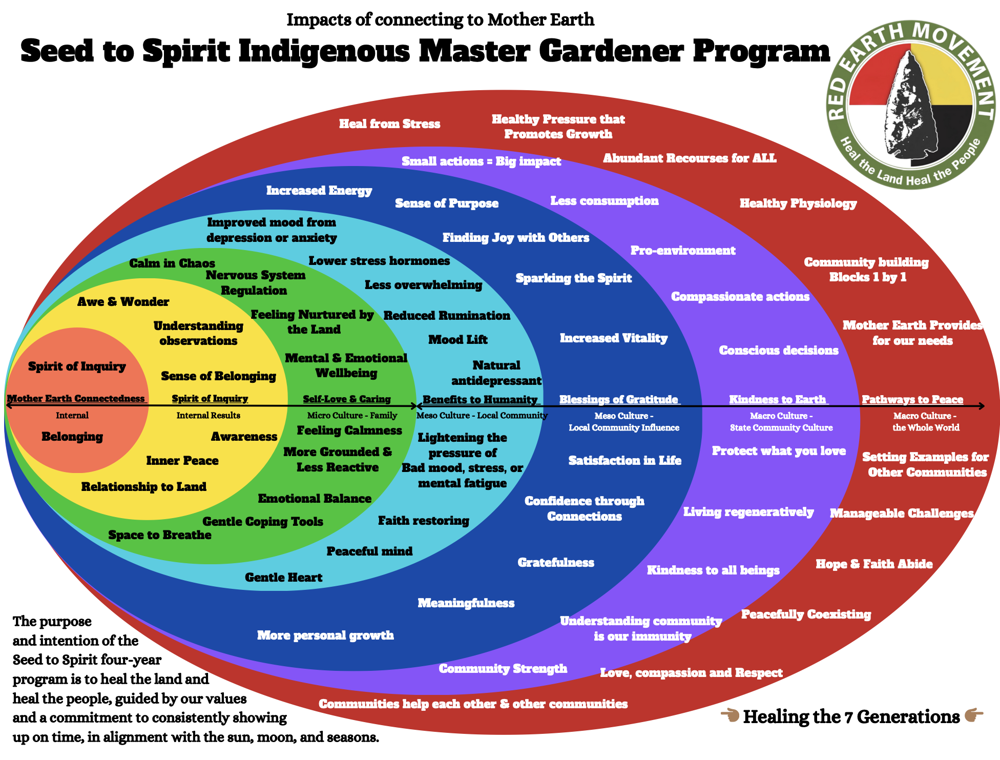 This journey from Seed to Spirit embodies the cycle of life, teaching us that when we care for Mother Earth, she in turn nourishes us, body, mind, and soul returning us to the path of being beneficial keystone species.